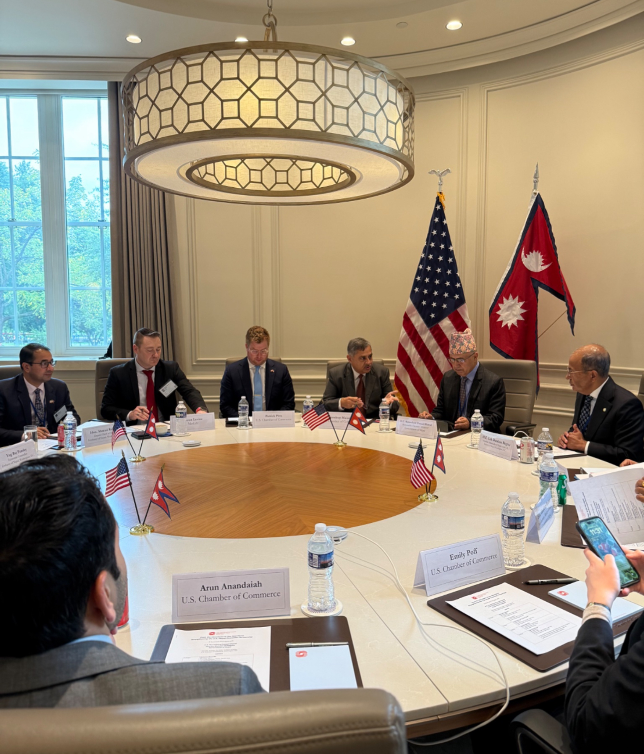 वाशिङटन डिसी, २८ असोज । विश्व बैंक तथा अन्तरराष्ट्रिय मुद्रा कोषको वार्षिक बैठकमा भाग लिन अमेरिका आएका अर्थमन्त्री रामेश्वरप्रसाद खनालले अमेरिका चेम्बर अफ कमर्सले आयोजना गरेको बिजनेस डायलगलाई सम्बोधन गरेका छन् । उक्त चेम्बर अफ कमर्सले आयोजना गरेको ‘फ्रम द हिमालयज टु द हार्टल्याण्ड स् अमेरिका नेपालको साझेदारीको मजबुती विषयक संवाद कार्यक्रममा मन्त्री खनालले नेपालको आर्थिक अवस्थाका बारेमा चर्चा गरे । कार्यक्रममा अमेरिकाका लागि नेपालका राजदूत लोकदर्शन रेग्मी, दूतावासका कर्मचारी तथा युएस चेम्बर अफ कमर्सका सदस्यहरुसमेत उपस्थित रहेको थियो ।