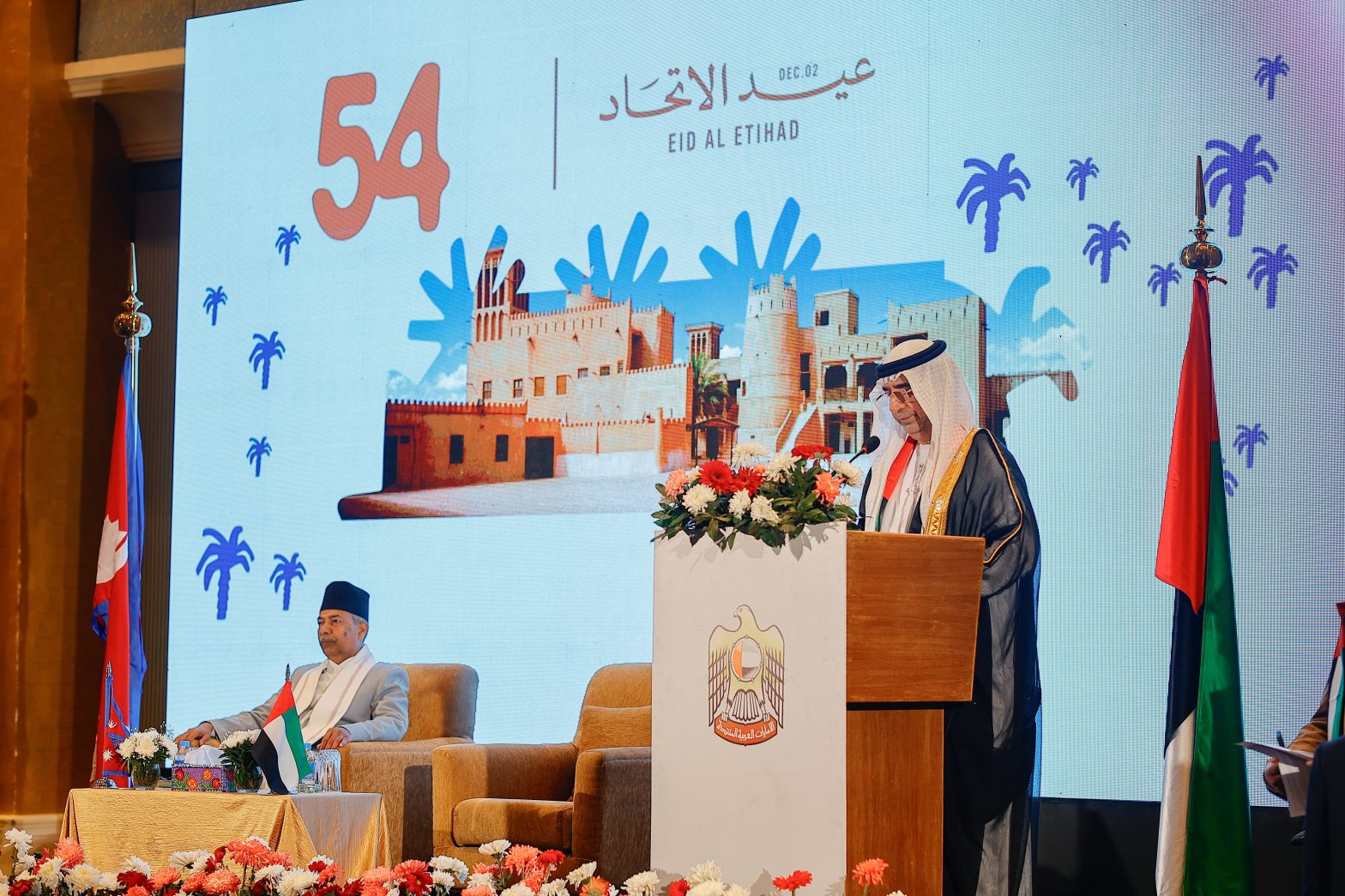 काठमाडौँ, १४ मङ्सिरः उपराष्ट्रपति रामसहायप्रसाद यादव संयुक्त अरब इमिरेट्स ९युएई०को ५४औँ राष्ट्रिय दिवसका अवसरमा शनिबार साँझ यहाँ आयोजित विशेष समारोहमा सहभागी भए । नेपालका लागि संयुक्त अरब इमिरेट्स ९युएई०का राजदूत अबदुल्ला सइद मुवारक जरवान अल शाम्सीले आयोजना गरेको समारोहमा मन्त्रिपरिषद्का सदस्य, संवैधानिक अङ्गका प्रमुख, यहाँस्थित कूटनीतिक नियोगका प्रमुख तथा पदाधिकारी, नेपाल सरकारका विशिष्ट श्रेणीका कर्मचारी, उद्योगपति, कामको सिलसिलामा यहाँ रहेका युएईका नागरिक तथा वरिष्ठ सञ्चारकर्मीहरूको उपस्थिति थियो ।
