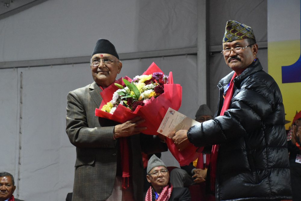 एमाले पार्टीको यसअघि दुई कार्यकाल नेतृत्व गरिसकेका नेता ओली काठमाडौमा सम्पन्न ११ औँ महाधिवेशनमा प्रतिस्पर्धी ईश्वर पोखरेलभन्दा १०९९ मत बढी प्राप्त गरी तेस्रो कार्यकालका लागि अध्यक्ष पदमा निर्वाचित भए । झापा विद्रोहमा नेतृत्वदायी भूमिका निर्वाह गर्दै जेलनेलसहित अनेकौँ आरोहअवरोह झेलेर मुलुकको राजनीतिक केन्द्रमा रहन सफल अध्यक्ष ओलीले तीनपटक देशको नेतृत्व गरिसकेका छन् ।