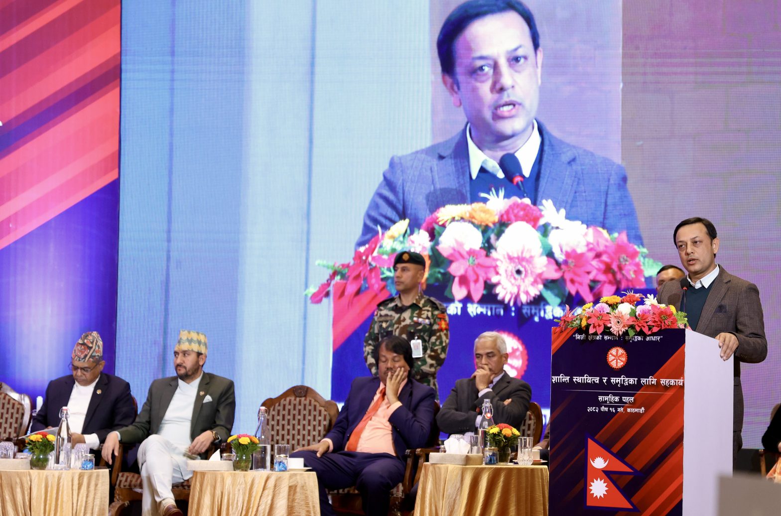 नेपाल उद्योग वाणिज्य महासङ्घद्वारा काठमाडौँमा बुधबार आयोजित ‘शान्ति, स्थायित्व र समृद्धिका लागि सहकार्य’सामूहिक पहल कार्यक्रममा राष्ट्रिय स्वतन्त्र पार्टी९रास्वपा०का उपसभापति डोलप्रसाद ‘डिपी ’अर्याल । तस्बिरः प्रदीपराज वन्त/रासस