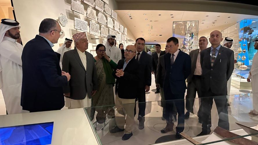 १९ कात्तिक, काठमाडौं । कतारको राजधानी दोहामा जारी ‘सामाजिक विकासका लागि दोस्रो विश्व शिखर सम्मेलन’मा सहभागी हुन आएका राष्ट्रपति रामचन्द्र पौडेलले बुधबार यहाँस्थित क़तार राष्ट्रिय संग्रहालय तथा इस्लामिक कला संग्रहालयको अवलोकन गरेका छन् । सो अवसरमा राष्ट्रपति पौडेललाई संग्राहालयका अधिकारीहरूले स्वागत गर्दै त्यहाँको बारेमा अवगत गराउनु भएको राष्ट्रपतिका प्रेस सल्लाहकार किरण पोखरेलले जानकारी दिए । राष्ट्रपति पौडेल कतारको राजधानी दोहामा मङ्गलबारदेखि शुरु भएको ‘सामाजिक विकासका लागि दोस्रो विश्व शिखर सम्मेलन’मा सहभागी हुन नेपाली प्रतिनिधिमण्डलको नेतृत्व गर्दै सोमबार यहाँ आइपुगेका हुन् ।