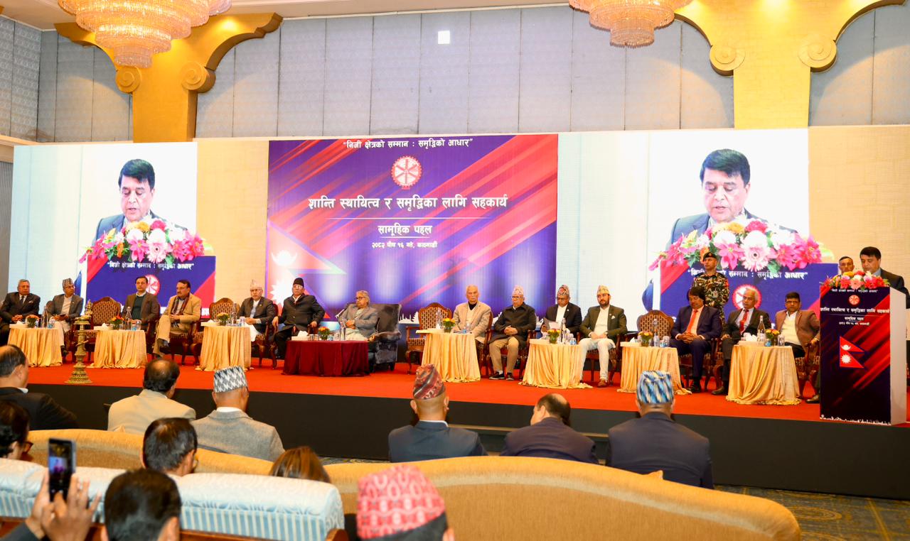 गत भदौ २३ र २४ का दिन भएको जेनजी आन्दोलनका क्रममा निजी क्षेत्रले झेल्नुपरेको प्रत्यक्ष भौतिक क्षति करिब रु ४० अर्ब र अप्रत्यक्ष क्षति रु ८१ अर्ब पुगेको उनले जानकारी दिए । उद्योग क्षेत्रलाई प्राथमिकता क्षेत्र घोषणा गर्नुपर्ने, निजी क्षेत्रको सुरक्षाका लागि ‘हटलाइन’ तथा द्रुत सुरक्षा दस्ता गठन गर्नुपर्ने माग पनि उनले राखे । नेपाल उद्योग परिसङ्घका अध्यक्ष वीरेन्द्रराज पाण्डेले निजीक्षेत्र स्थायित्व, लगानीको संरक्षण र समृद्धिका लागि सरकारको प्रभावकारी सहयोग अपेक्षित रहेको बताए । सुशासन, पारदर्शिता, नीतिगत स्पष्टता र स्थायित्वले मुलुकको समग्र अर्थतन्त्रलाई फाइदा पुग्ने विश्वास निजीक्षेत्रले लिएको उनको भनाइ थियो ।