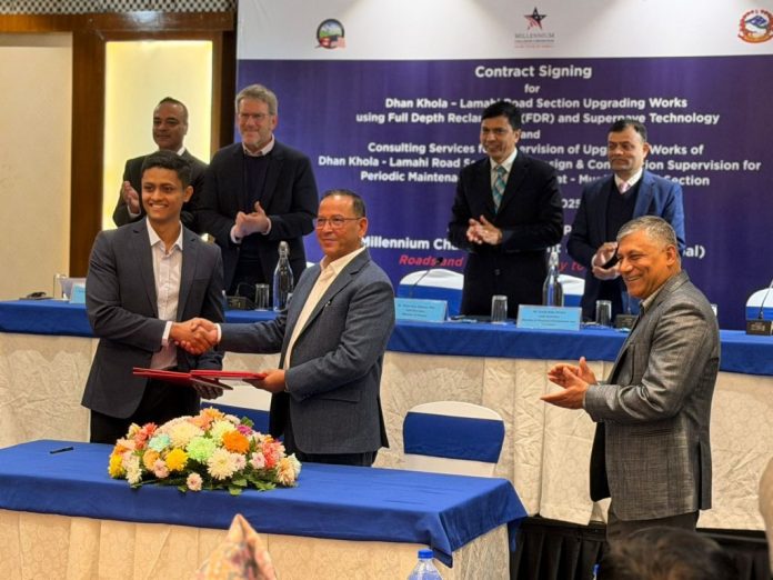 काठमाडौँ, ७ पुस । मिलेनियम च्यालेञ्ज एकाउण्ट नेपाल विकास समिति (एमसिए–नेपाल) अन्तर्गत बन्ने दुईवटा सडक आयोजनाका लागि करिब दुई करोड ३७ लाख अमेरिकी डलर बराबरको सम्झौता भएको छ । एमसिए–नेपालले आज जारी गरेको प्रेस विज्ञप्तिअनुसार एमसिसी नेपाल कम्प्याक्टअन्तर्गतका सडक मर्मत आयोजना कार्यान्वयनका क्रममा पूर्व-पश्चिम राजमार्गको धानखोलाबाट लमहीसम्मको खण्डको स्तरोन्नतिका लागि शर्मा-कुमार संयुक्त उपक्रमसँग करिब दुई… Continue reading एमसिए-नेपालद्वारा दुई वटा सम्झौतामा हस्ताक्षर