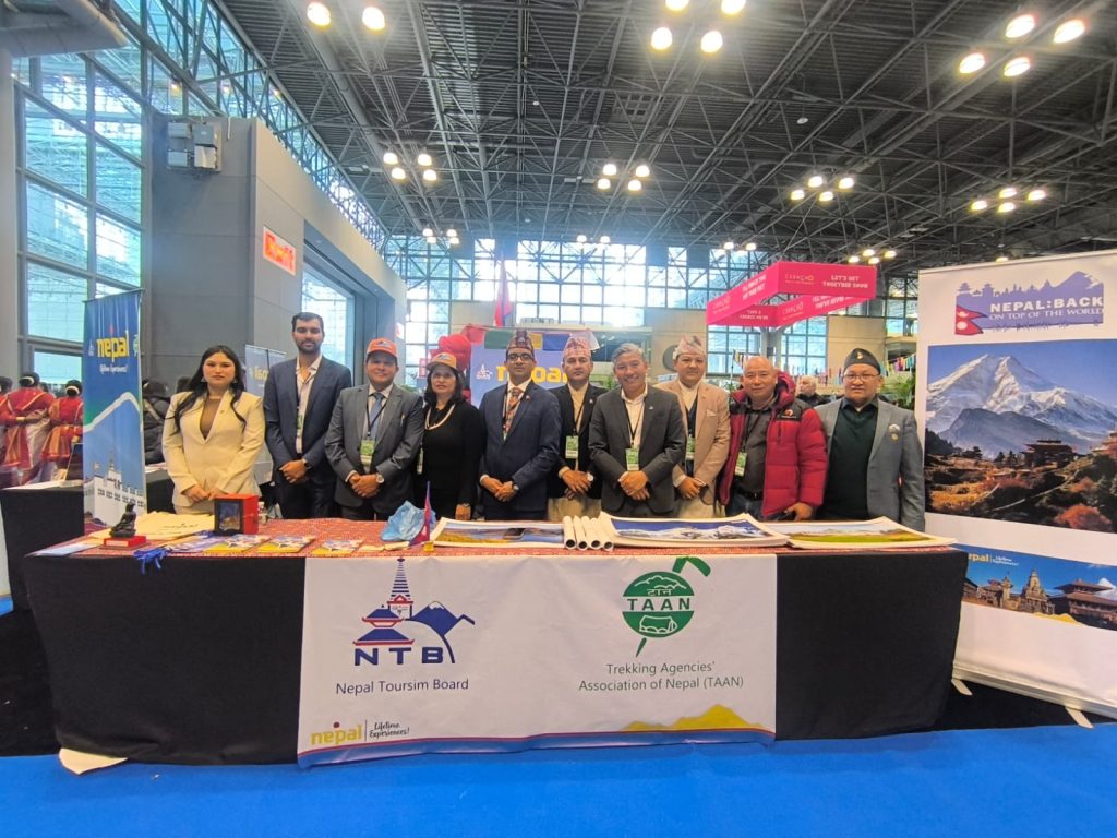 काठमाडौँ, १३ माघः नेपाल पर्यटन बोर्ड (एनटिबी) ले संयुक्त राज्य अमेरिकामा नेपालको पर्यटन प्रवर्द्धनलाई थप सुदृढ बनाउने उद्देश्यसहित न्युयोर्कमा आयोजित ट्राभल एन्ड एडभेन्चर शो २०२६ मा सहभागिता जनाएको छ । उक्त कार्यक्रम २४–२५ जनवरी २०२६ मा जेकब के जाभिट्स कन्भेन्सन सेन्टर, न्युयोर्कमा सम्पन्न भएको हो । नेपालका लागि अमेरिका एक महत्त्वपूर्ण स्रोत बजार रहँदै आएको… Continue reading न्युयोर्कको ट्राभल एन्ड एडभेन्चर शोमा नेपालको प्रवर्द्धन